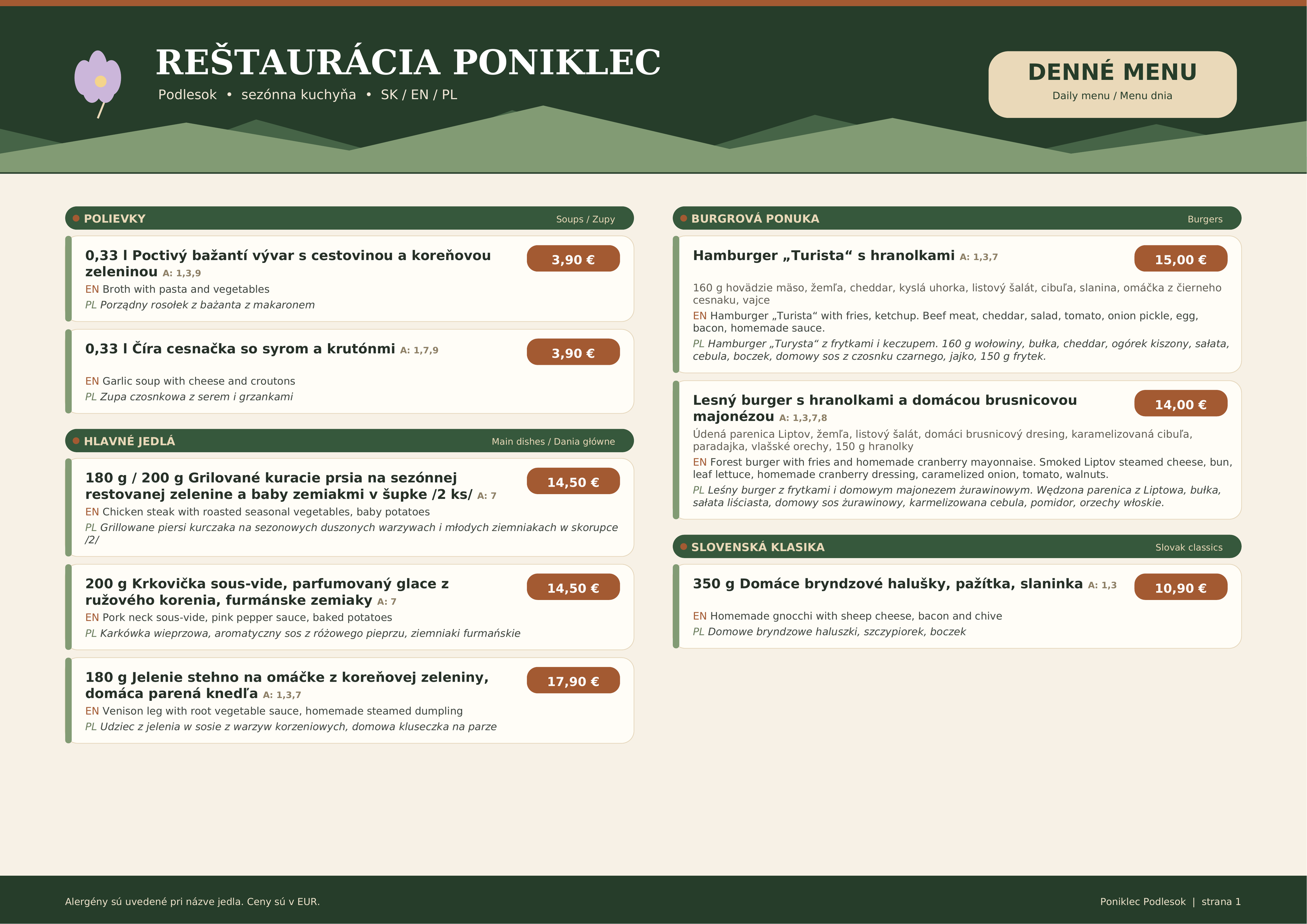 Vitajte na stránke Reštaurácie Poniklec, nachádza sa na Podlesku v Slovenskom raji.